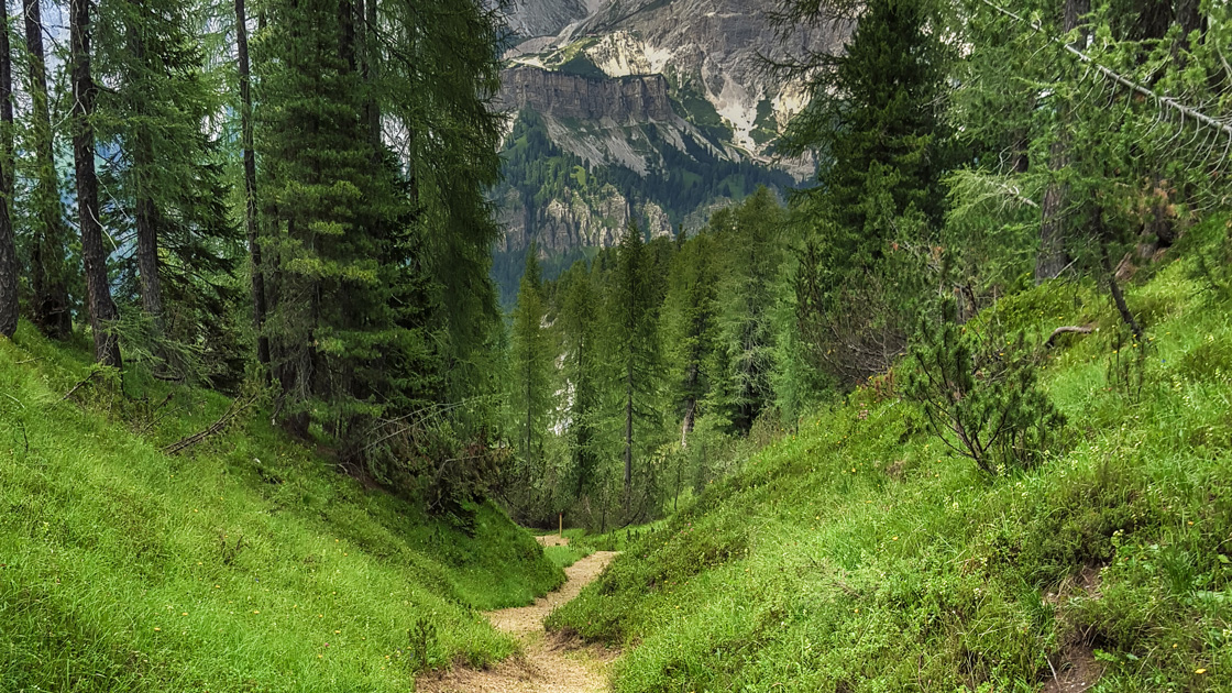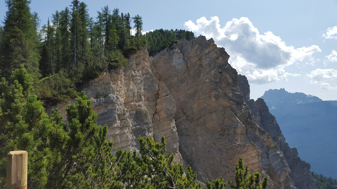 Il sentiero è caratterizzato da una pendenza contenuta e nel tratto più in quota si affaccia verso la conca ampezzana regalando all’escursionista una vista mozzafiato.